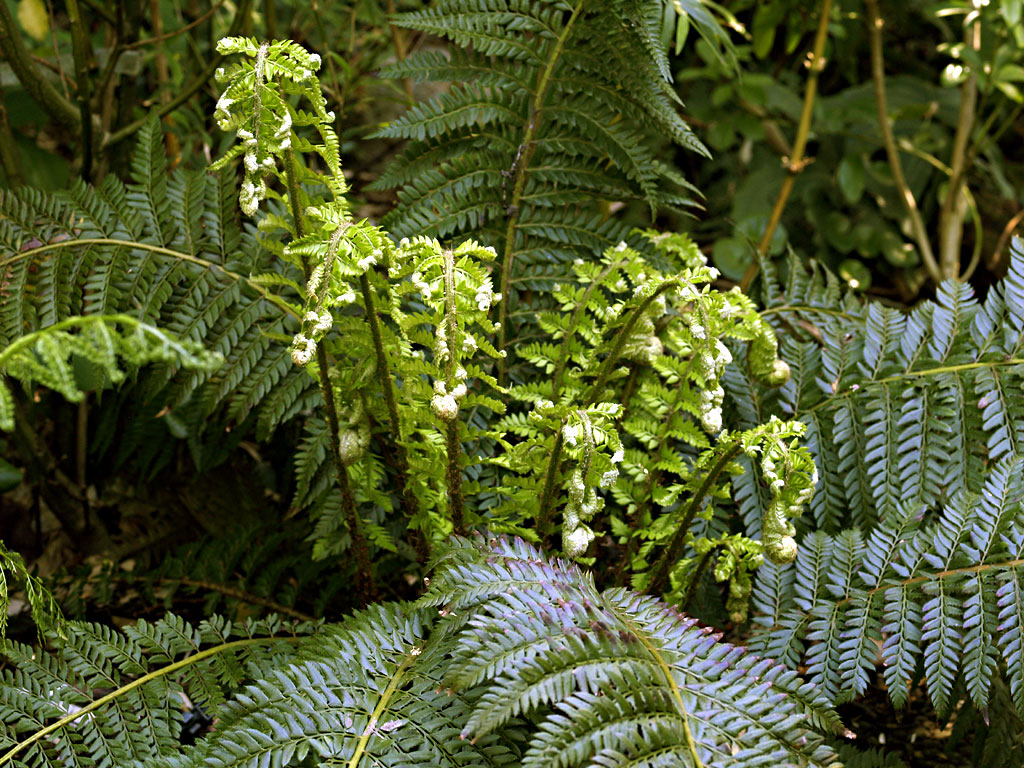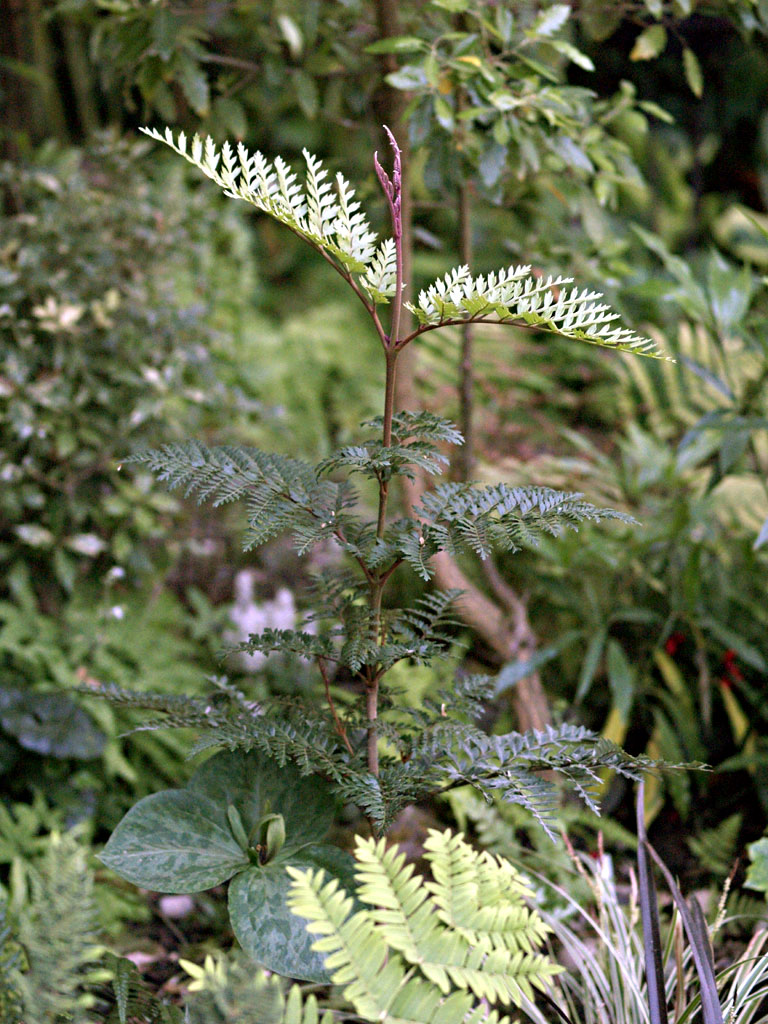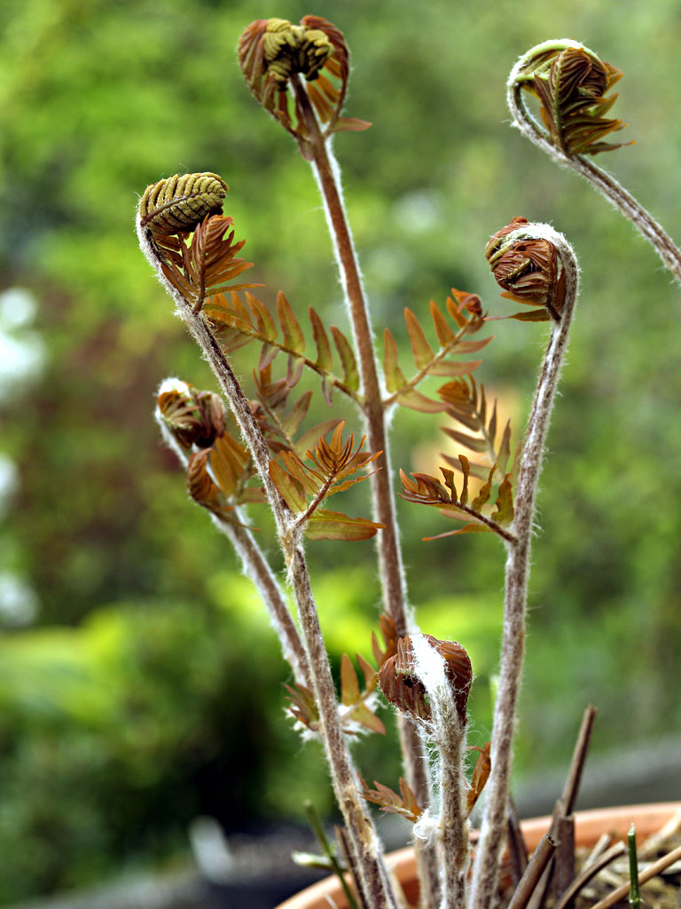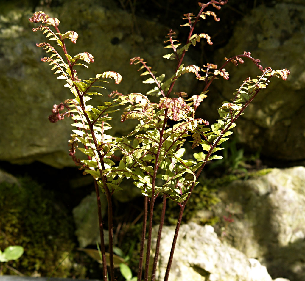 /*Athyrium otophorum okanum*/ auch ein schönes Farbspiel, nicht nur im Austrieb.