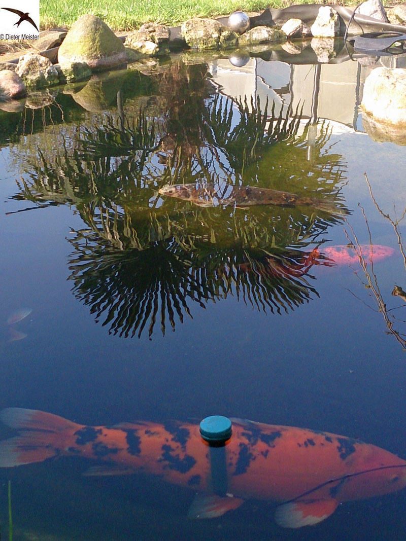 heute Morgen nach den Sturm, habe ich ein paar Aufnahmen mit der Spiegelung meiner lübecker Trachy im Gartenteich gemacht.