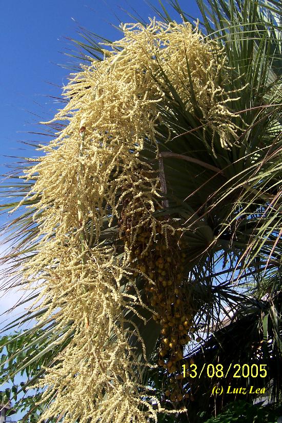 Im Hintergrund in diesem Garten 'Washingtonia filiferas' (!?)
