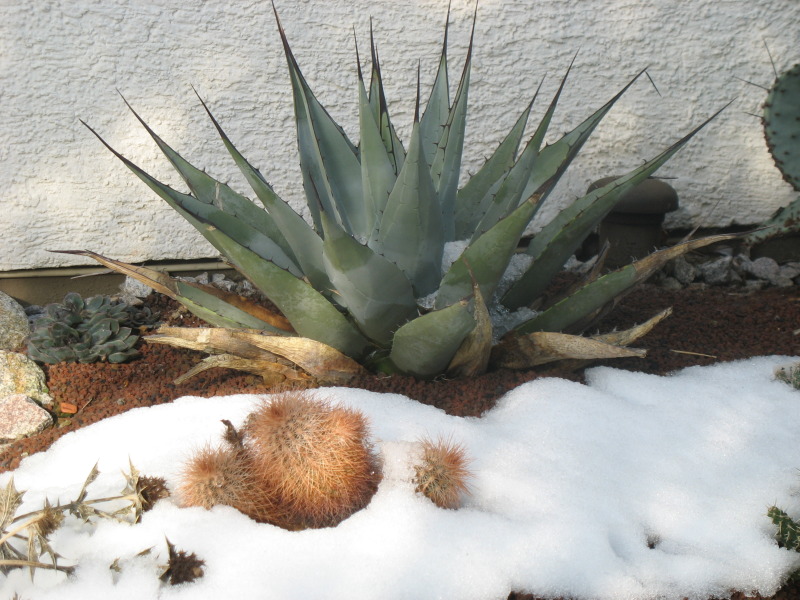 schneller geht das Abtauen jetzt im Xerophytenbeet, besonders bei Sonnenschein, den die Südfassade reflektiert