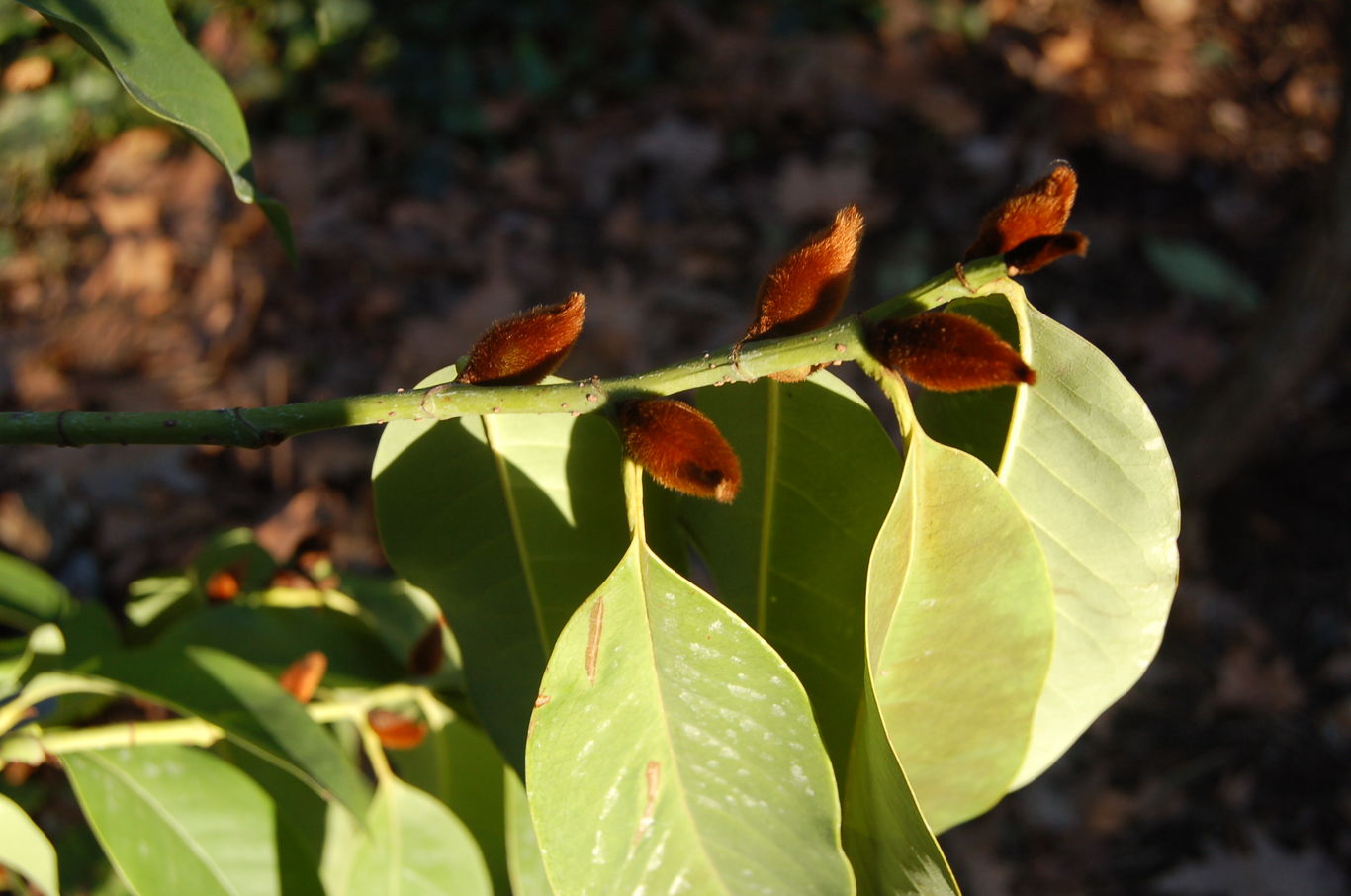.Da besonders im Winter natürlich die Immergrünen auffallen, bemerkte ich erstmals auch diesen fantastischen kleinen Baum, der offensichtlich einiges verspricht: Immergrün, große Blätter,duftende rosafarbene Blüten (/*Magnolia 'Touch of Pink'*/, eine Hybride aus Michelia doltsopa und Michelia figo, die wesentlich winterhärter als die Eltern sein soll.Man wird es bald wissen!![]()