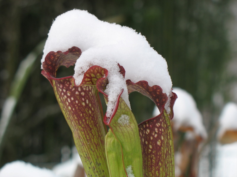 um die Schläuche. Schon verwunderlich, dass Sarracenia überwiegend als Zimmerpflanze angeboten wird