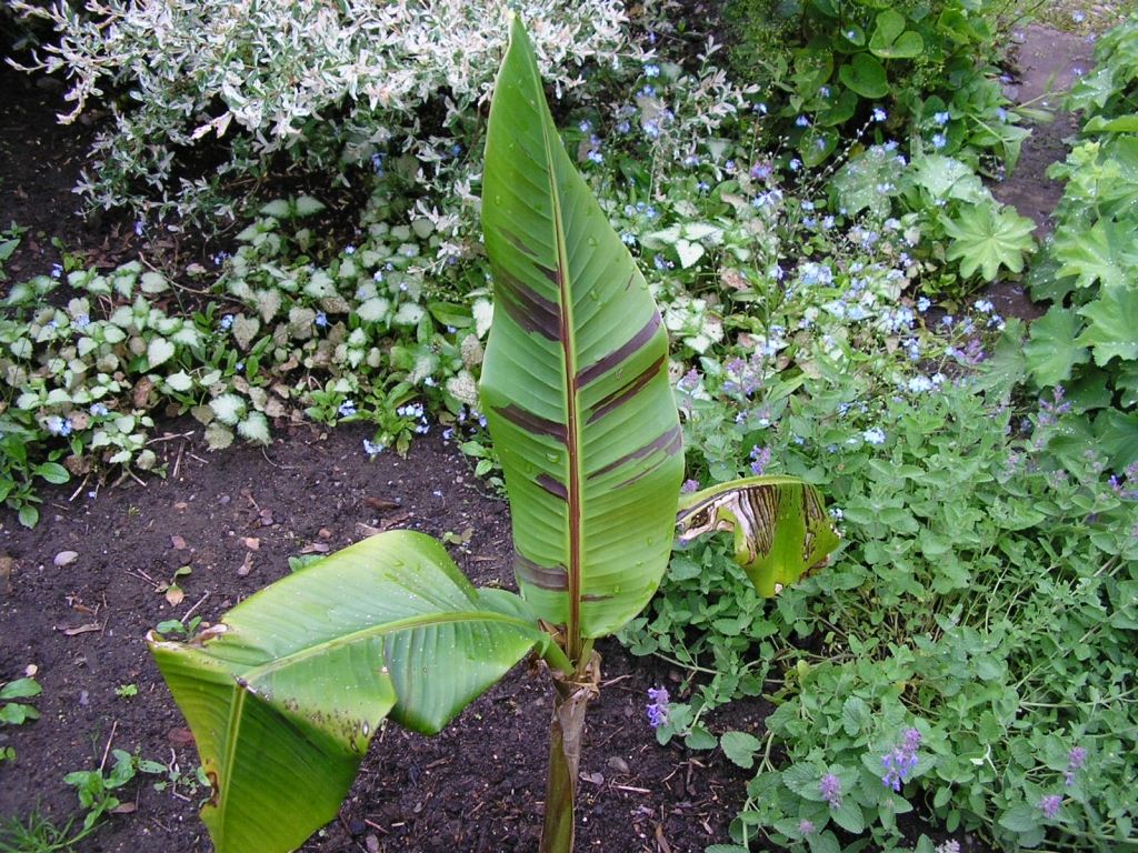 Meine Ende März ausgepflanzte Musa sikkimensis hat gerade ihr zweites Blatt entfaltet.