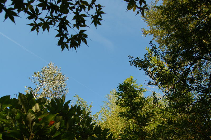 wie hier li oben/* Eucalyptus gunnii Silverform*,der scheinbar aus /*Quercus pontica*/ herauswächst.Re versch z.T. sehr(!!!,bis 10m) hohe Bambusarten und Nothofagus ant.