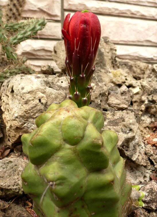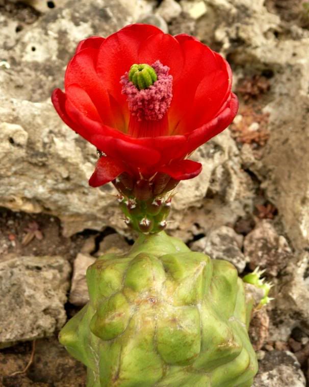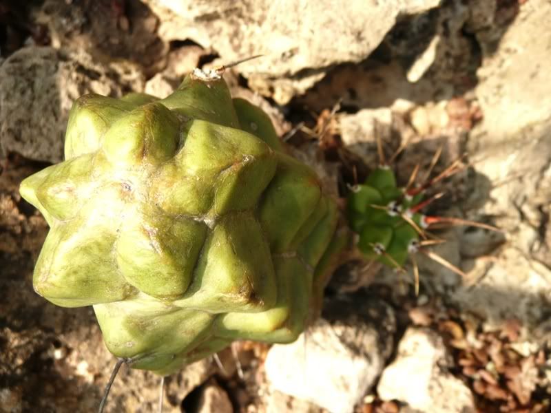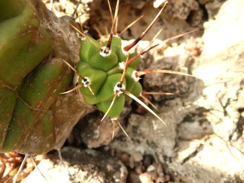 ist dieses Exemplar eines /*Echinocereus triglochidiatus ssp. inermis*/sieht schon irgendwie seltsam nackig aus, aber der frisch geborene 'Ableger ist nicht unbewehrt.