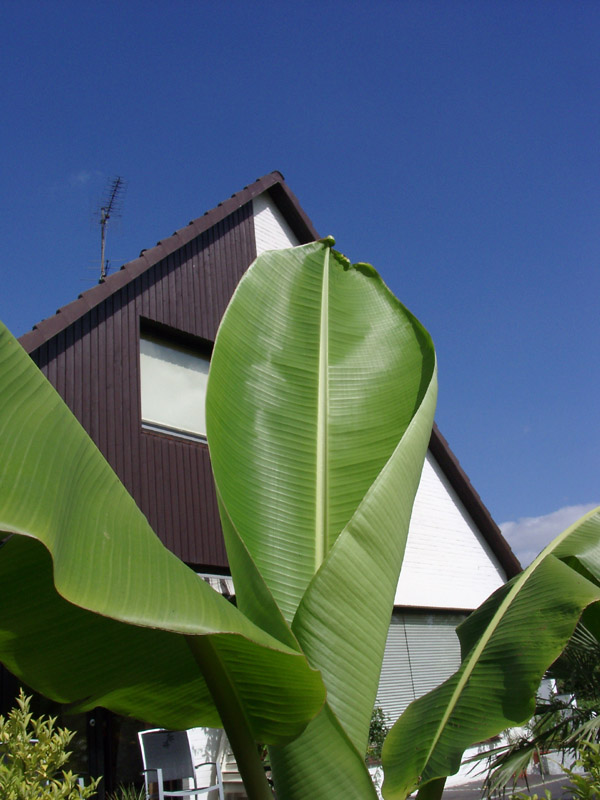 Durch geschickte Wahl von Brennweite und Aufnahmestandort wirkt die Musa (in realitas 2,5m) fast so groß wie unser Haus ;-)