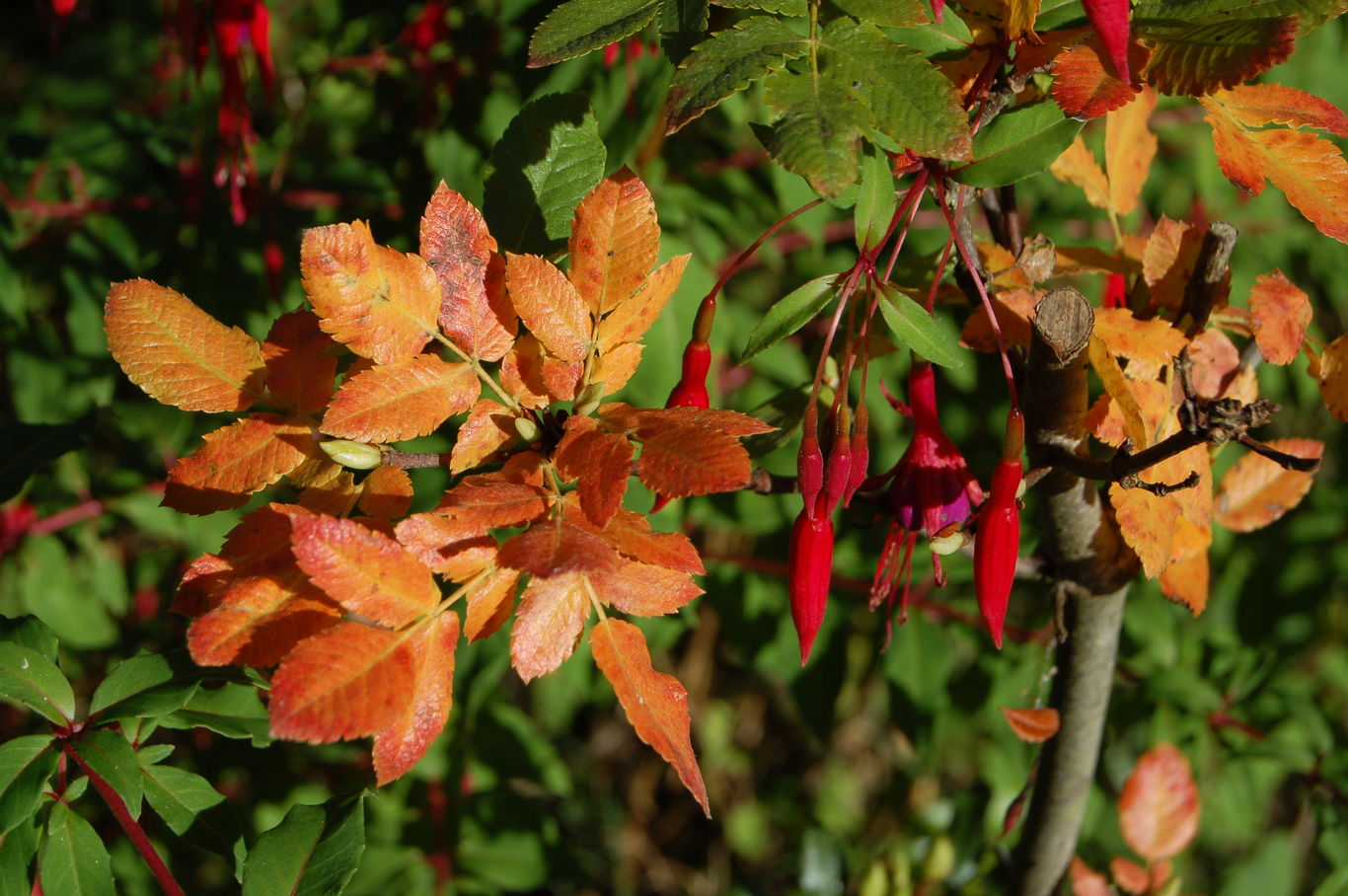 mit schöner Herbstfärbung:/*Eucryphia glutinosa*/ hat leider seit den Kaltwintern nicht mehr geblüht, aber sie lebt!!!!!!