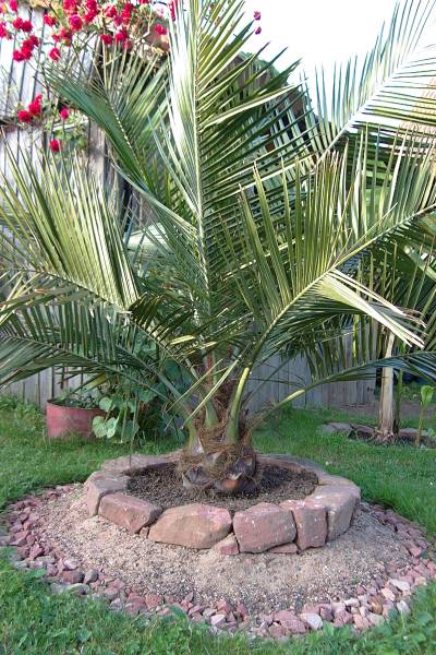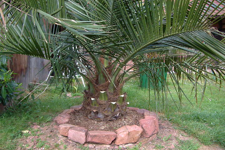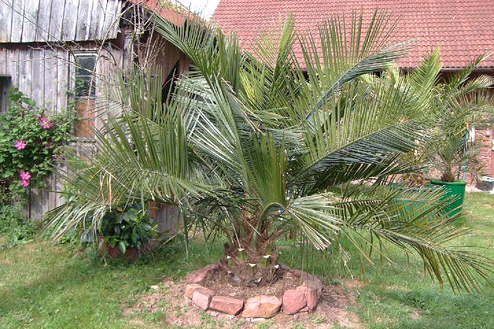 m�chte auch mal die Entwicklung meiner Jubaea anhand von Bildern zeigen.Das erste Bild zeigt die Jubaea kurz nach der Pflanzung im Fr�hjahr 2002