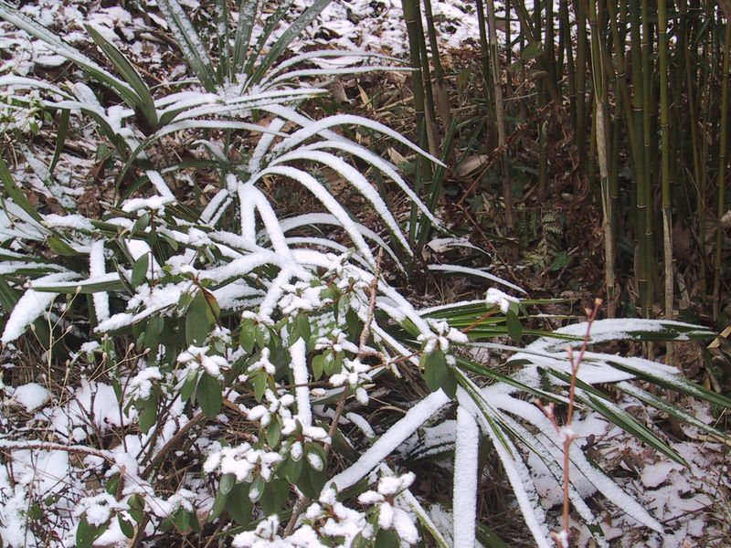 meine "alte" Nadelpalme, die im kalten 96er Winter ihren Hauptstamm verlor neben Fargesia robusta
