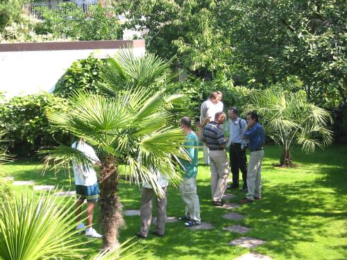 rege Diskussion zwischen Palmen, es war schwer die Kollegen zum Kaffe und Kuchen zu bewegen!