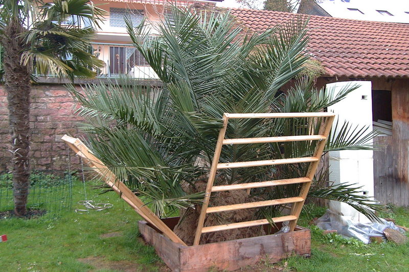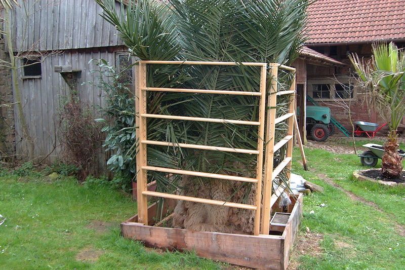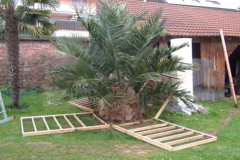 Meine Jubaea hatte ich erst vor 2 1/2 Wochen von der Umbauung befreit und die Wedelpresse geöffnet.