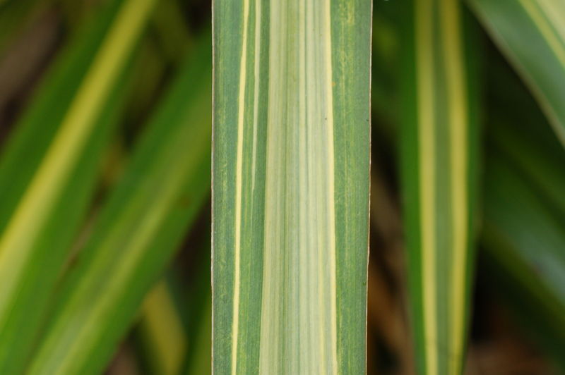 m.M. noch nicht endgültig identifizierte Yucca-Sorte, die aus Yucca flaccida Golden Sword entstand.Grundfarbe grün, nicht überwiegend gelb, dazu hat sie mitten im zentralen Gelbanteil des Blattes unterschiedlich breite güne Streifen. Die daneben stehende "Golden Sword" sieht völlig anders aus!