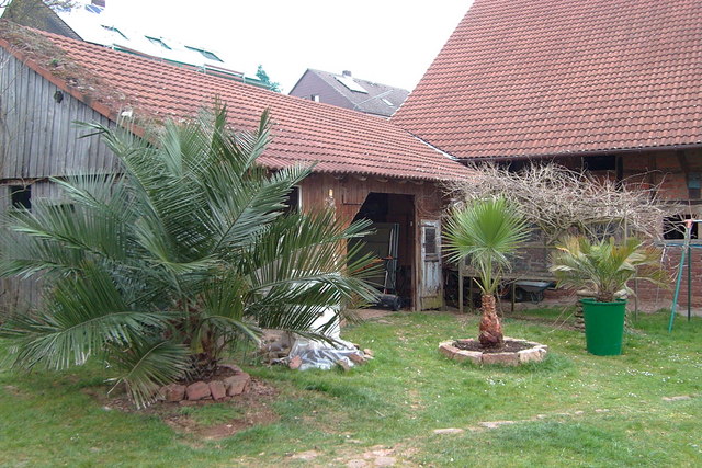 Obwohl ich die Jubaea sehr in die Umbauung einquetschen musste,haben sich die Wedel wieder problemlos entfaltet.Schäden an Stellen,an denen die Wedel an der Lupo angelegen haben,kann ich keine erkennen.Gegossen habe ich die Jubaea von Anfang Dezember bis heute kein einziges Mal.