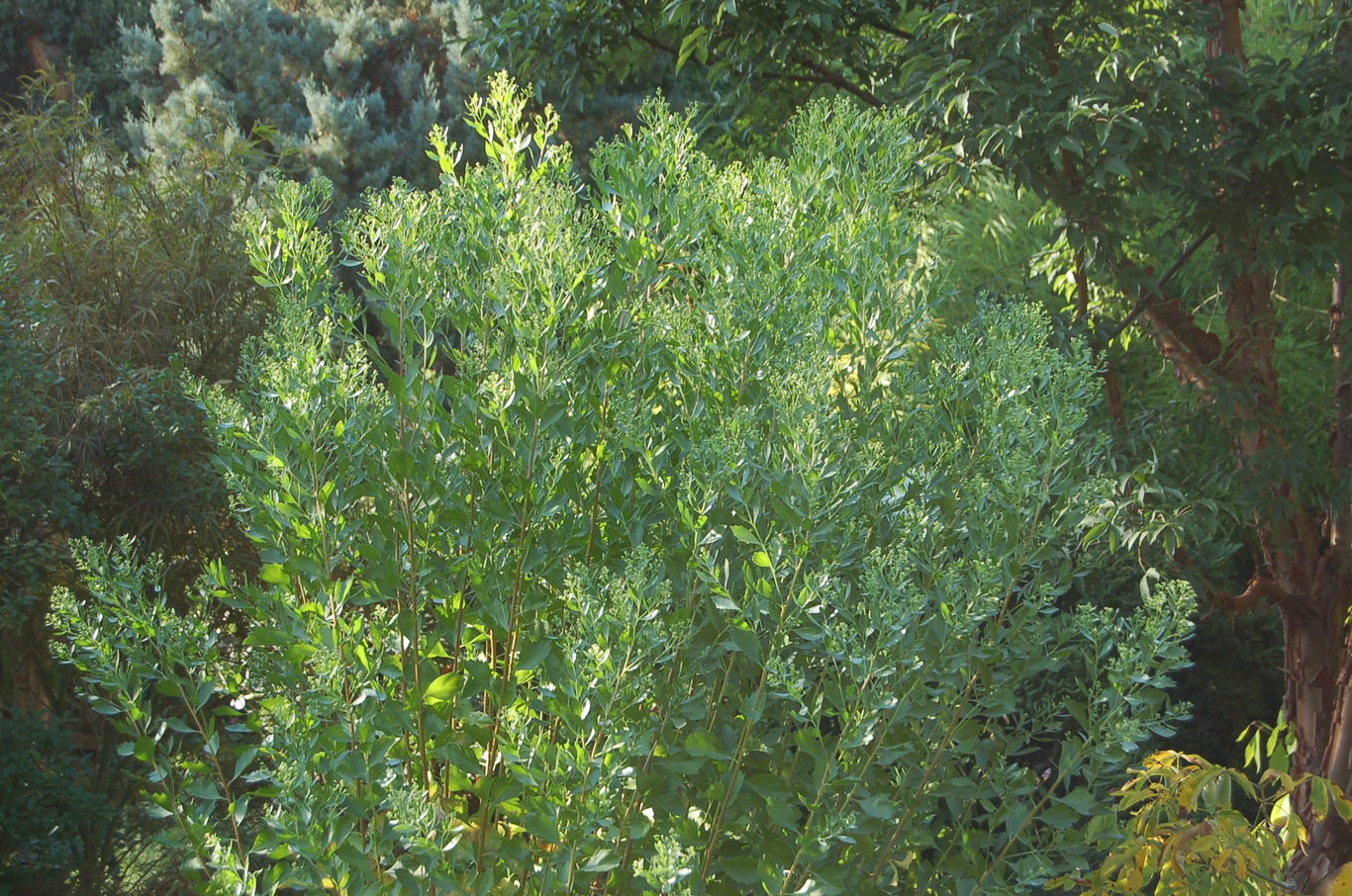 Winterhart, immergrün, sehr dekoratives graublaues Laub und Bienenweide: /*Baccharis halimifolia*/#AM