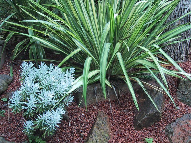 Das südafrikan. Zwerggehölz ist einfach ein "Knaller",dahinter eine selt. Selektion der Yucca flaccida variegata