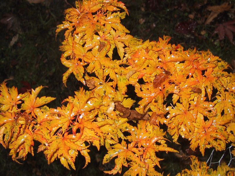 Bei den Japanern sehr beliebt:/*Acer palmatum Shishigashira*/,der Löwenkopfahorn mit seinen leuchtend orange-farbenen gekrausten Blättern.