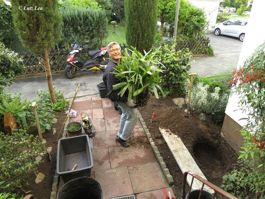 Umpflanzaktion der Nadelpalme - es war alles vorbereitet. Einen großzügigen Erdballen konnte ich erhalten.