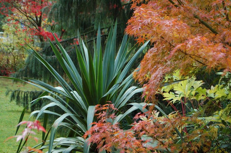 hier /*Yucca recurvifolia*/ neben Acer palmatum Seiryu