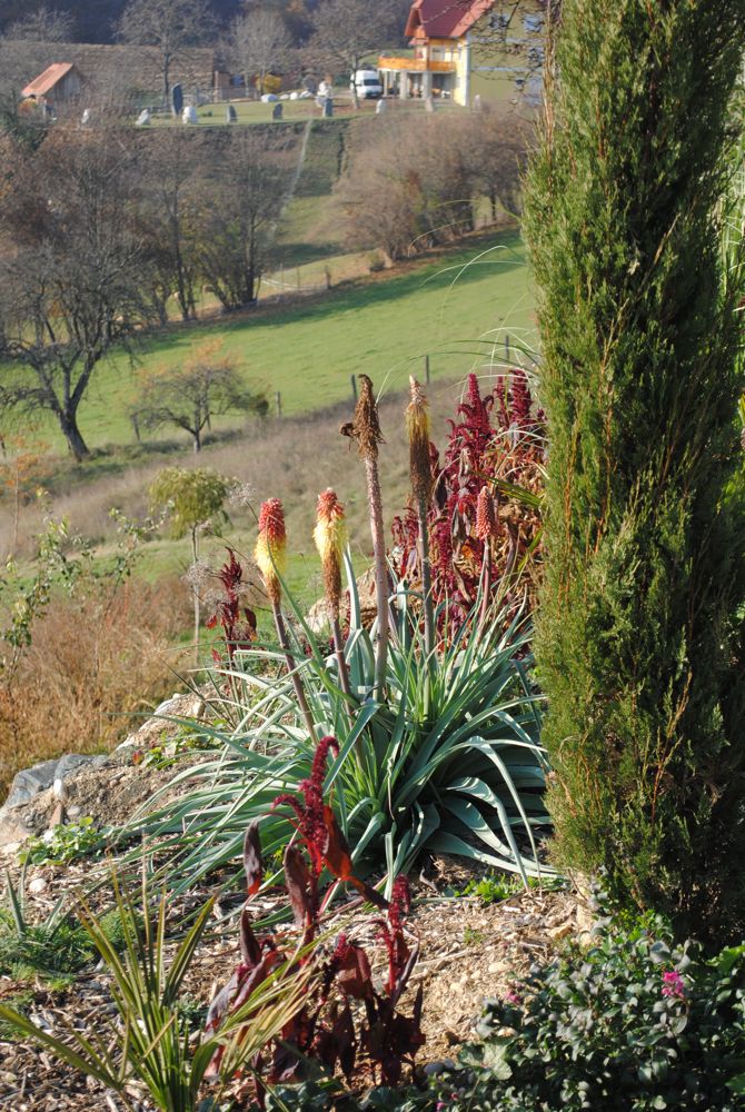 Musste heute zu einem Termin nach Graz und so konnte ich auch einen Abstecher zu Bernhard machen. Ein sehr beeindruckender Garten. Ich kann fast nicht glauben, dass er erst 4 Jahre alt ist. So soll ein Garten sein, er hat zu jeder Jahreszeit was zu bieten. Exoten und heimische Elemente finden ein harmonisches Ganzes. Man könnte ewig in dem Garten herumirren. Das Wetter war heute auch perfekt.