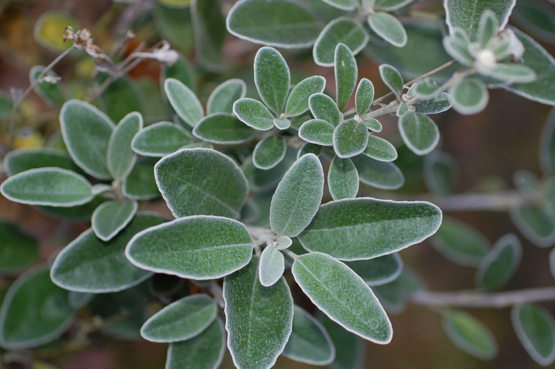 auch ohne ihre gelben margeritenähnlichen Blüten macht /*Brachyglottis- Hybride Sunshine*/ einen dekorativen Eindruck