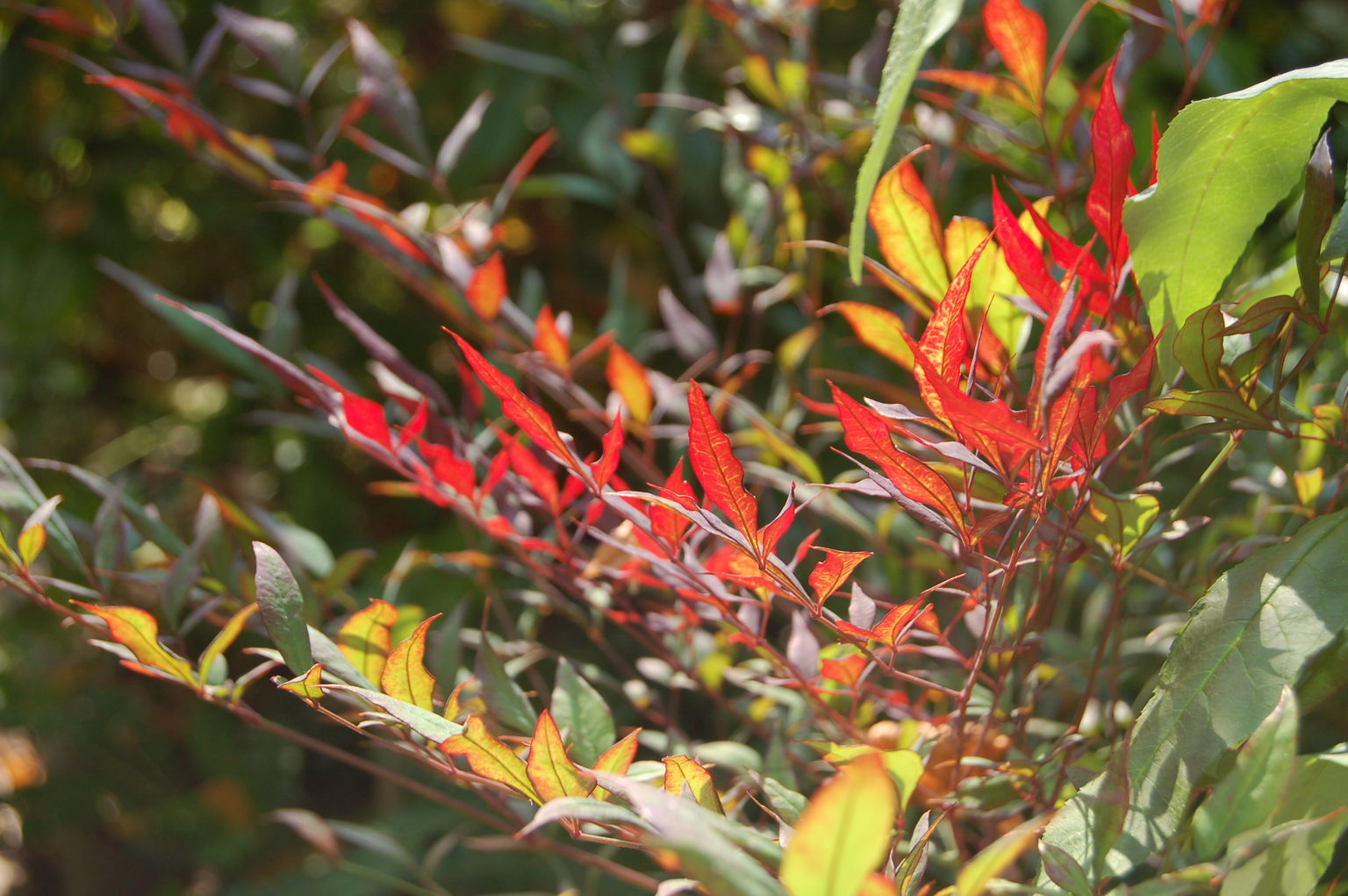wie hier /*Nandina domestica 'Plum Passion'*/ zeichnen sich durch ihre Blattfärbungen aus!#AM