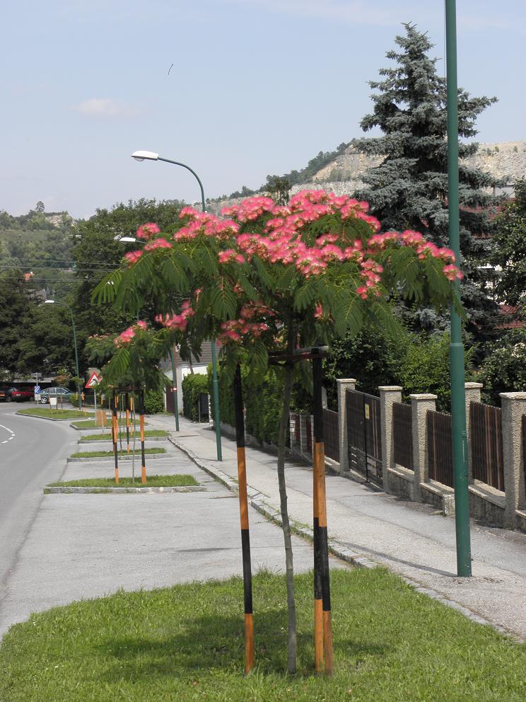 /* Albizia julibrissin */ in einem Garten im Ort: