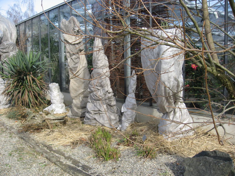 Zuerst habe ich aber mal das Gewaechshaus umrundet und nach dem Winterschutz einiger Exoten geschaut.