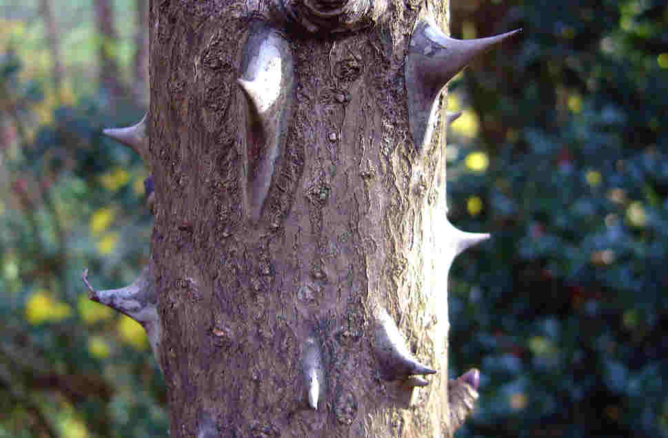im unbelaubten Zustand treten oftmals die Stacheln an den Stämmen mehr in dern Vordergrund. (Kurzinfo, für den es interessiert: Stacheln sind Bildungen der Epidermis und weiterem äußeren Gewebe. Sie lassen sich im Gegensatz zu Dornen ablösen, wobei sie eine meist elliptische Narbe hinterlassen. Dornen sind umgewandelte Sprosse wie beim Weißdorn, Schwarzdorn etc.).