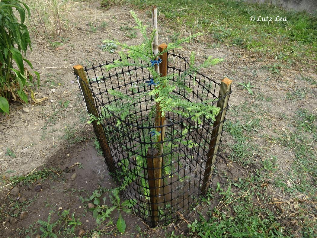 Auf diesen Redwood (Küstenmammutbaum) passe ich besonders auf - erst vor ca. 4 Wochen ausgepflanzt - Herkunft: Stecklingsanzucht aus dem Exotenwald