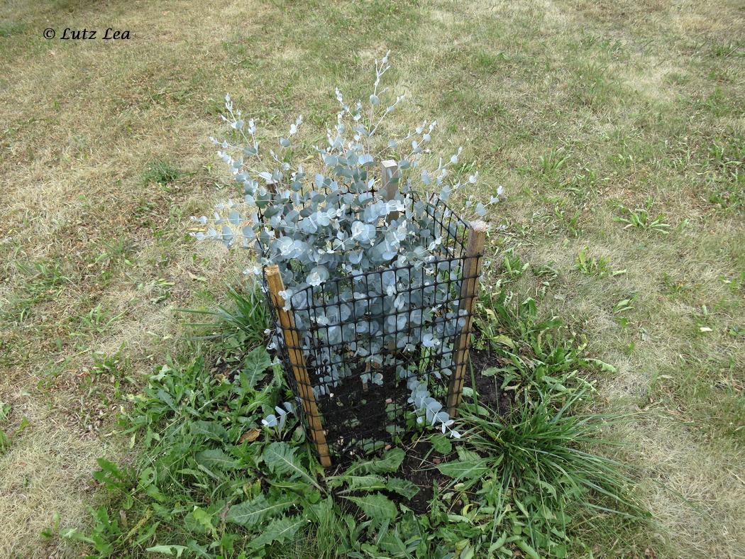 Eucalyptus gunnii 'Azura' (angeblich härter als die Art) gedeiht ganz gut und kommt in die Gänge.