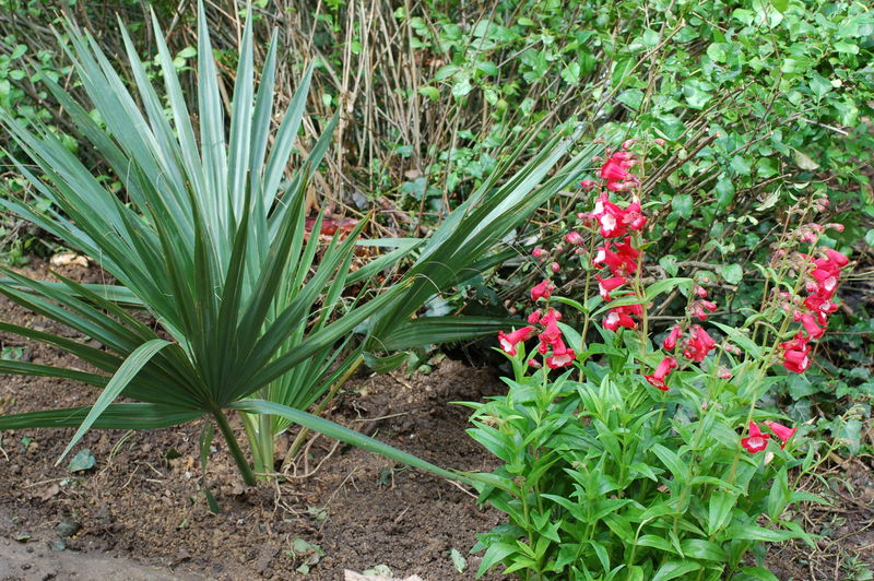 ein nicht ganz winterharter Bartfaden (Penstemon Maurice Gibbs) neben /*Sabal minor*/ (2.Versuch!!!)